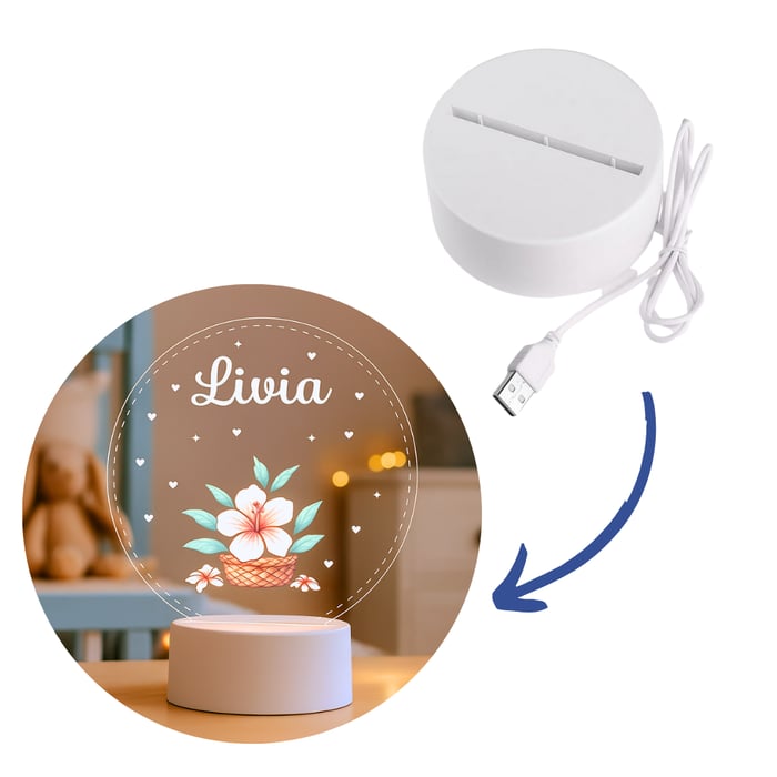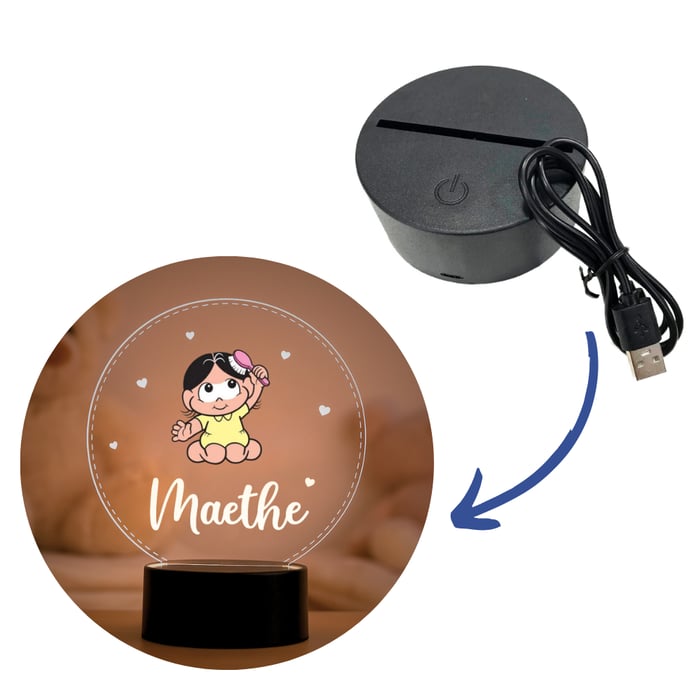 Cada luminária vem com uma peça em acrílico personalizada, tornando-a única e memorável, além de ser uma decoração incrível para o ambiente.